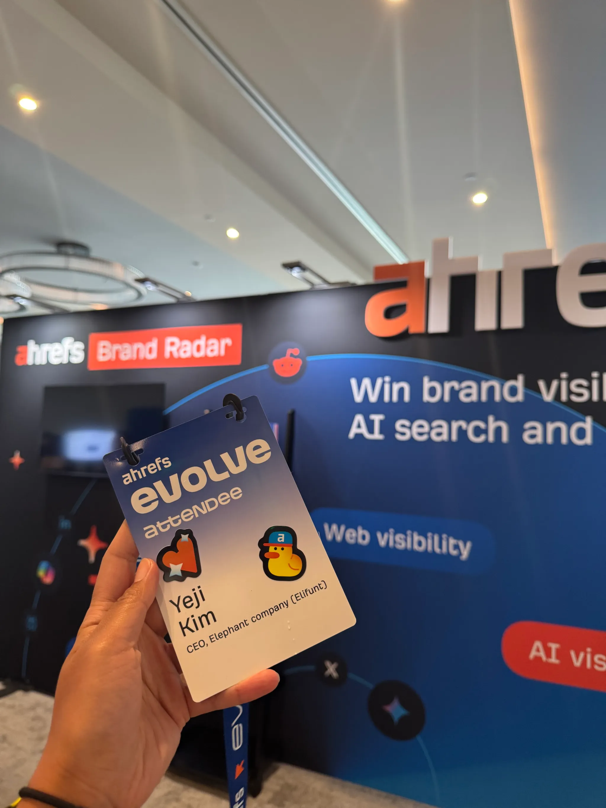엘리펀트컴퍼니가 글로벌 SEO 서비스 Ahrefs가 개최하는 Ahrefs Evolve 2025에 참여합니다. 현지 시각 10/14~15 양일간 샌디에고 현장의 뜨거운 열기, 실시간으로 전해드릴게요!