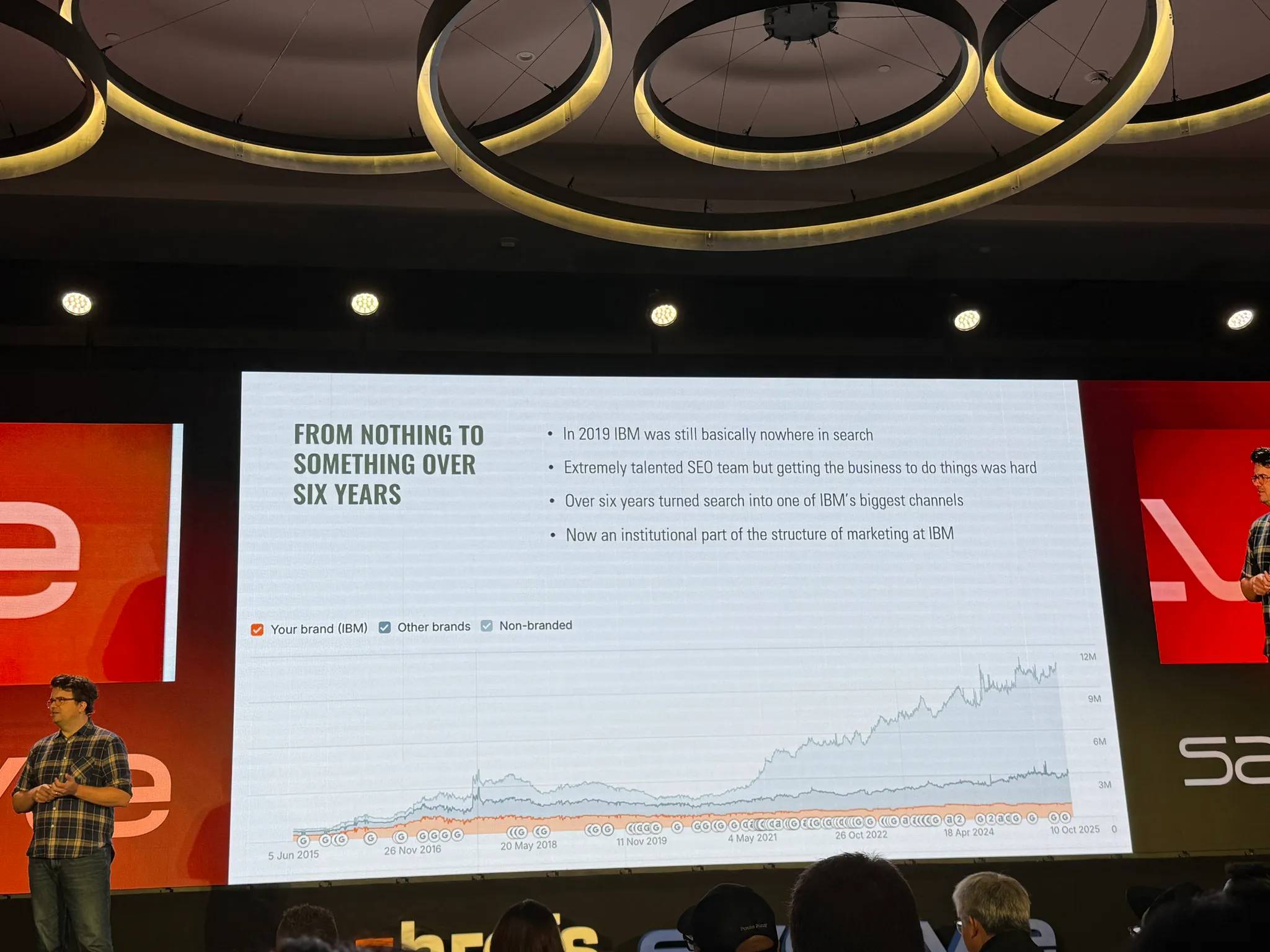 2019년경 IBM은 디지털 마케팅 영역에서 심각한 문제에 직면했다. 대부분의 마케팅 활동이 전통적인 광고에 집중되어 있었고, 경제적 효율성이 매우 낮은 상태였다. 경쟁사들이 수억 달러 규모의 논브랜드(브랜드/서비스명이 아닌 일반적 키워드를 통한 유입) 오가닉 트래픽을 확보하는 동안, IBM은 이 분야에서 거의 성과를 내지 못하고 있었다.